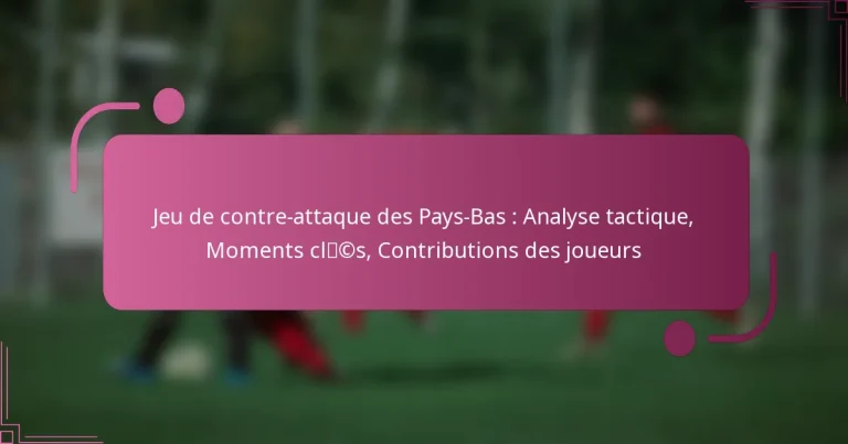Jeu de contre-attaque des Pays-Bas : Analyse tactique, Moments clés, Contributions des joueurs