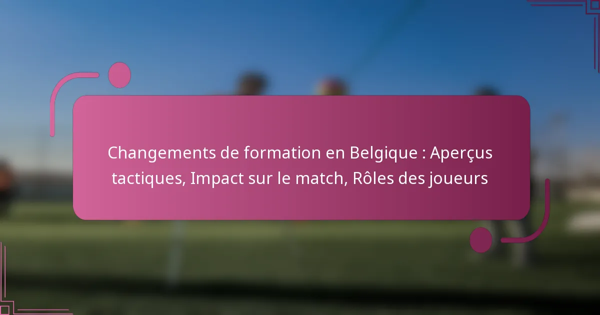 L’évolution tactique récente de la Belgique à travers des changements de formation vise à améliorer la performance de l’équipe et à s’adapter à divers adversaires. Ces ajustements influencent non seulement les résultats des matchs en modifiant les stratégies et les rôles des joueurs, mais nécessitent également que les joueurs clés s’adaptent rapidement à de nouvelles responsabilités, impactant finalement leurs contributions sur le terrain.