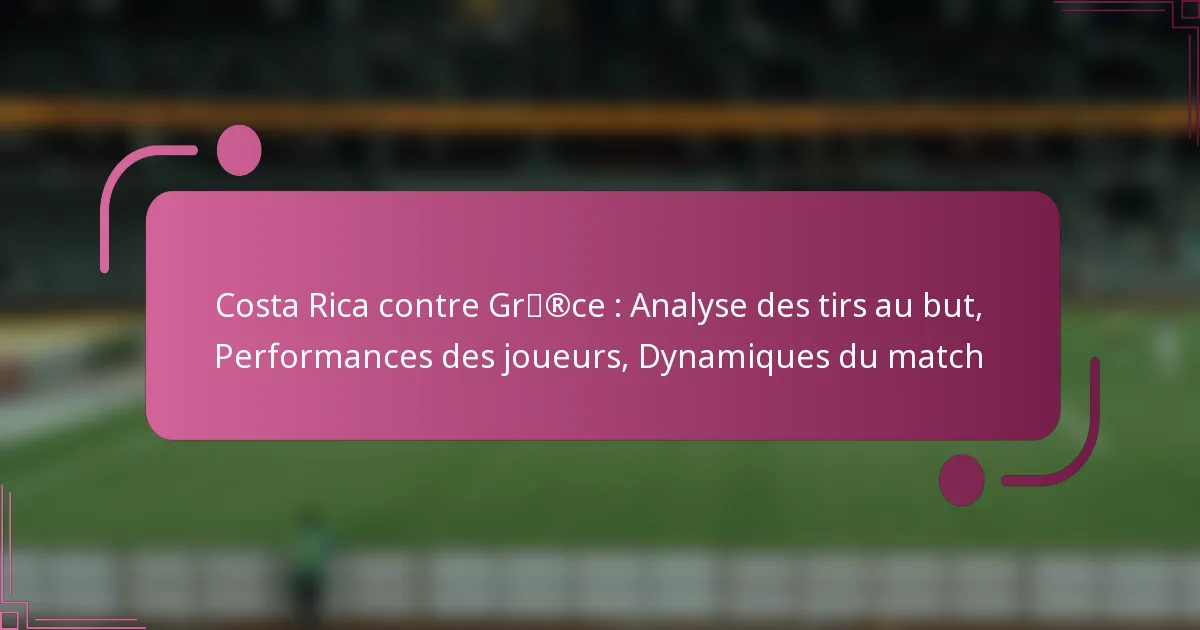Le match Costa Rica contre Grèce s’est terminé par une séance de tirs au but dramatique qui a mis en avant la résilience et l’habileté des deux équipes. Des moments clés et des performances individuelles ont joué un rôle crucial dans la dynamique du jeu, influençant finalement l’issue de cette rencontre tendue.