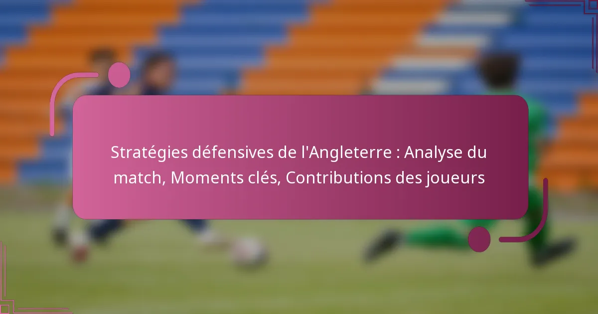 Stratégies défensives de l’Angleterre : Analyse du match, Moments clés, Contributions des joueurs