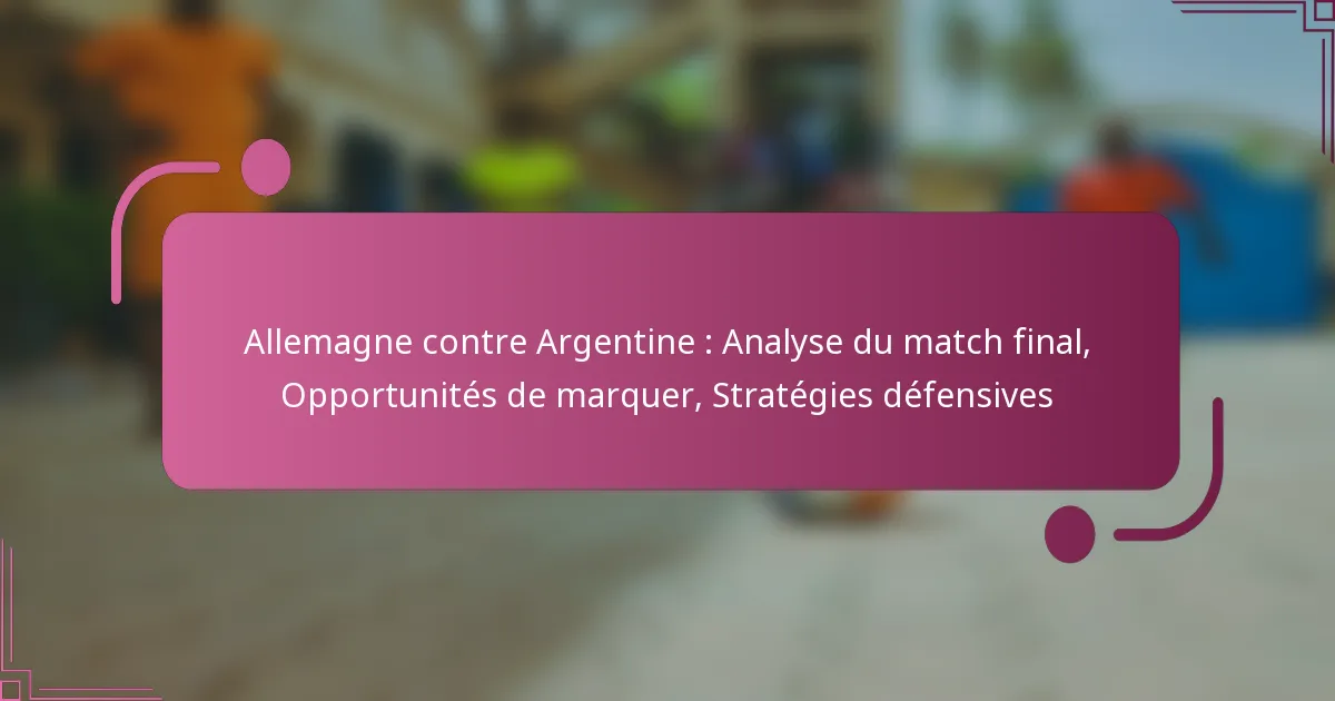 Allemagne contre Argentine : Analyse du match final, Opportunités de marquer, Stratégies défensives