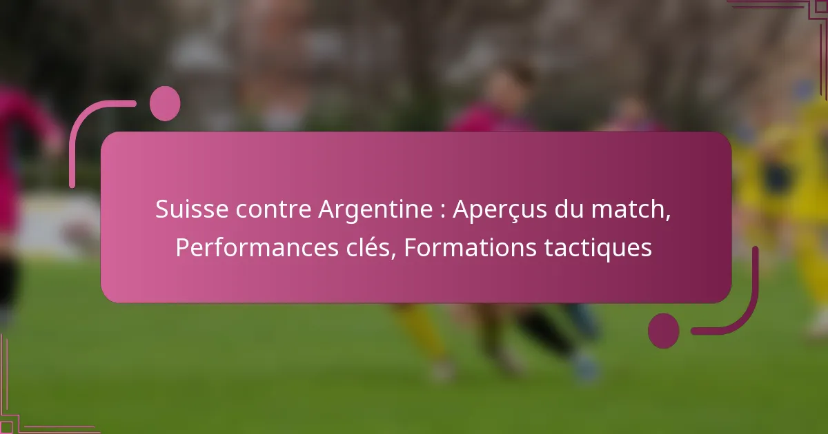 Lors du match entre la Suisse et l’Argentine, plusieurs joueurs ont livré des performances exceptionnelles qui ont significativement influencé le résultat du jeu. Les contributions clés des deux équipes ont mis en avant leurs forces tactiques et leurs compétences individuelles, rendant le concours captivant.